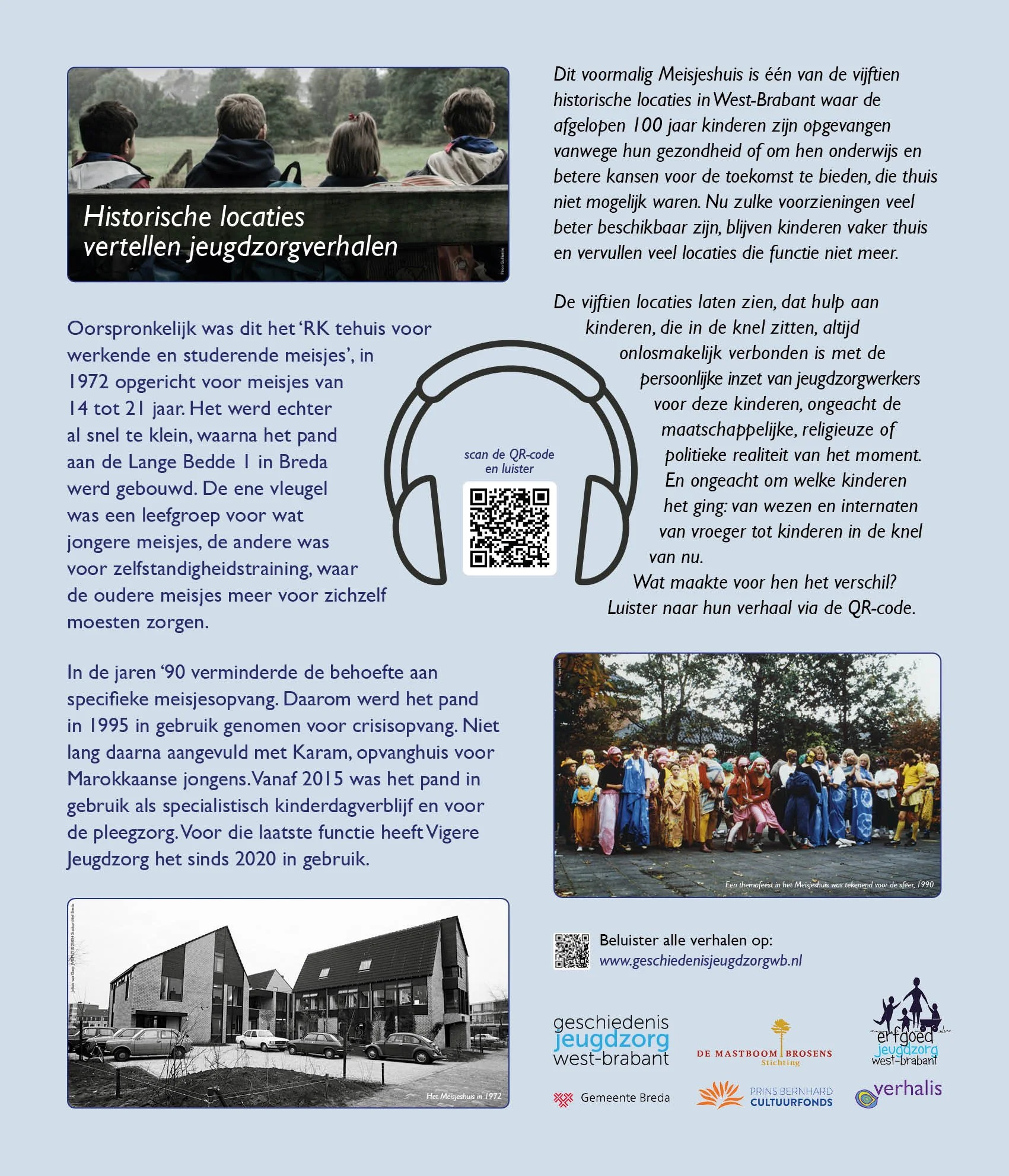 Bij vijftien locaties in West-Brabant, die een belangrijke rol hebben gespeeld in de ontwikkeling van de jeugdzorg, zijn herinneringsborden geplaatst. Op verzoek van de Stichting Erfgoed Jeugdzorg West-Brabant hebben we een plan ontwikkeld voor een serie korte podcasts en een radiodocumentaire. De podcasts met verhalen van oud-medewerkers en voormalige pupillen zijn te beluisteren via de QR-codes op de borden.